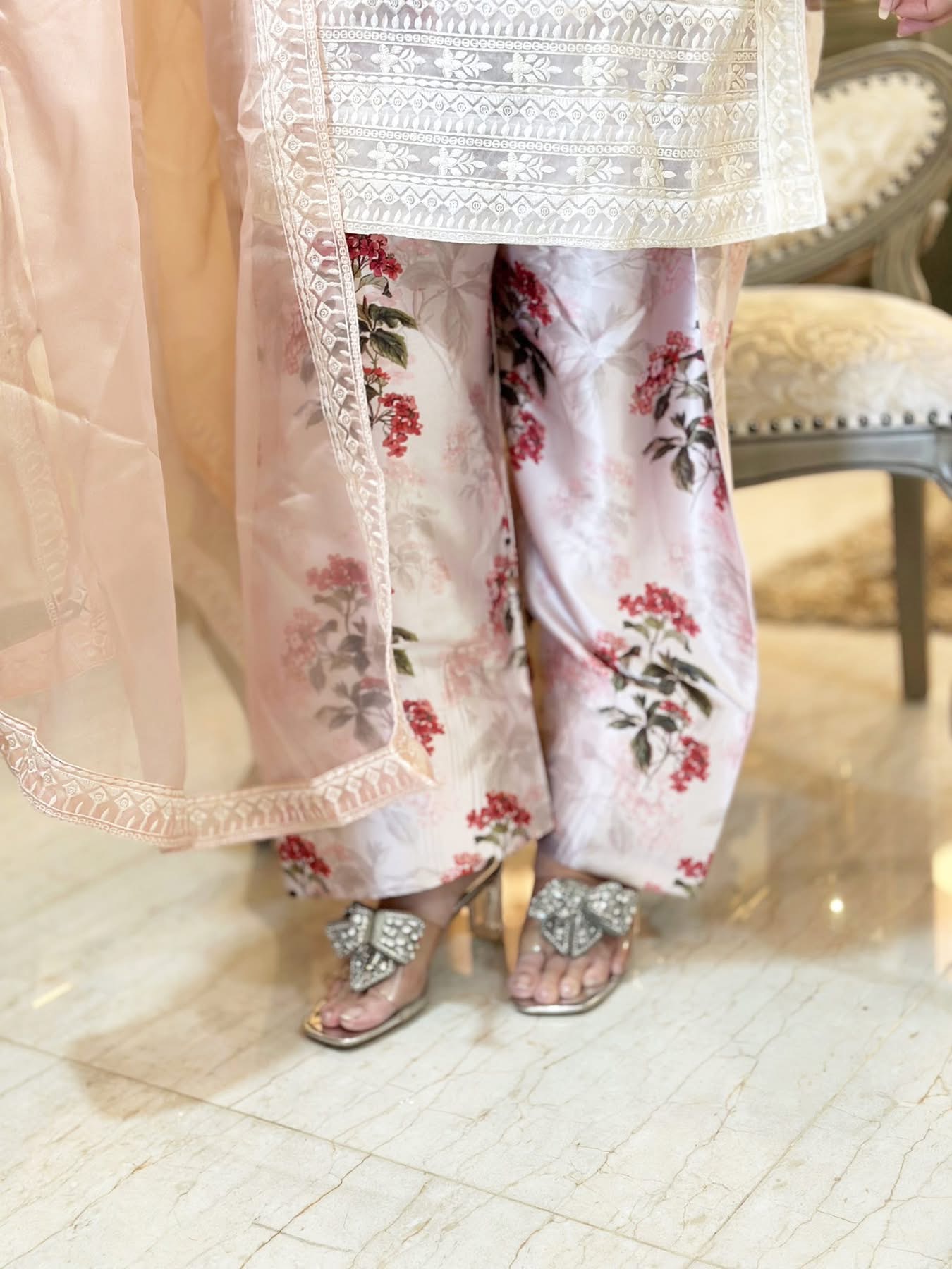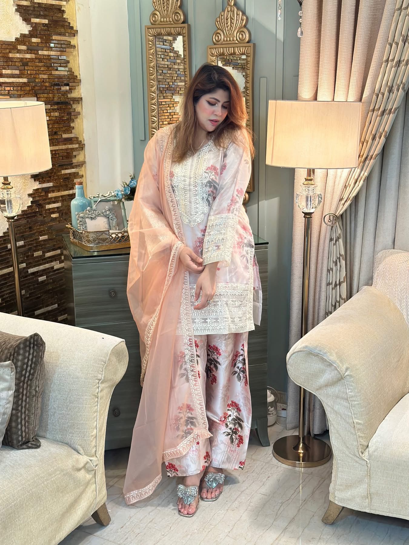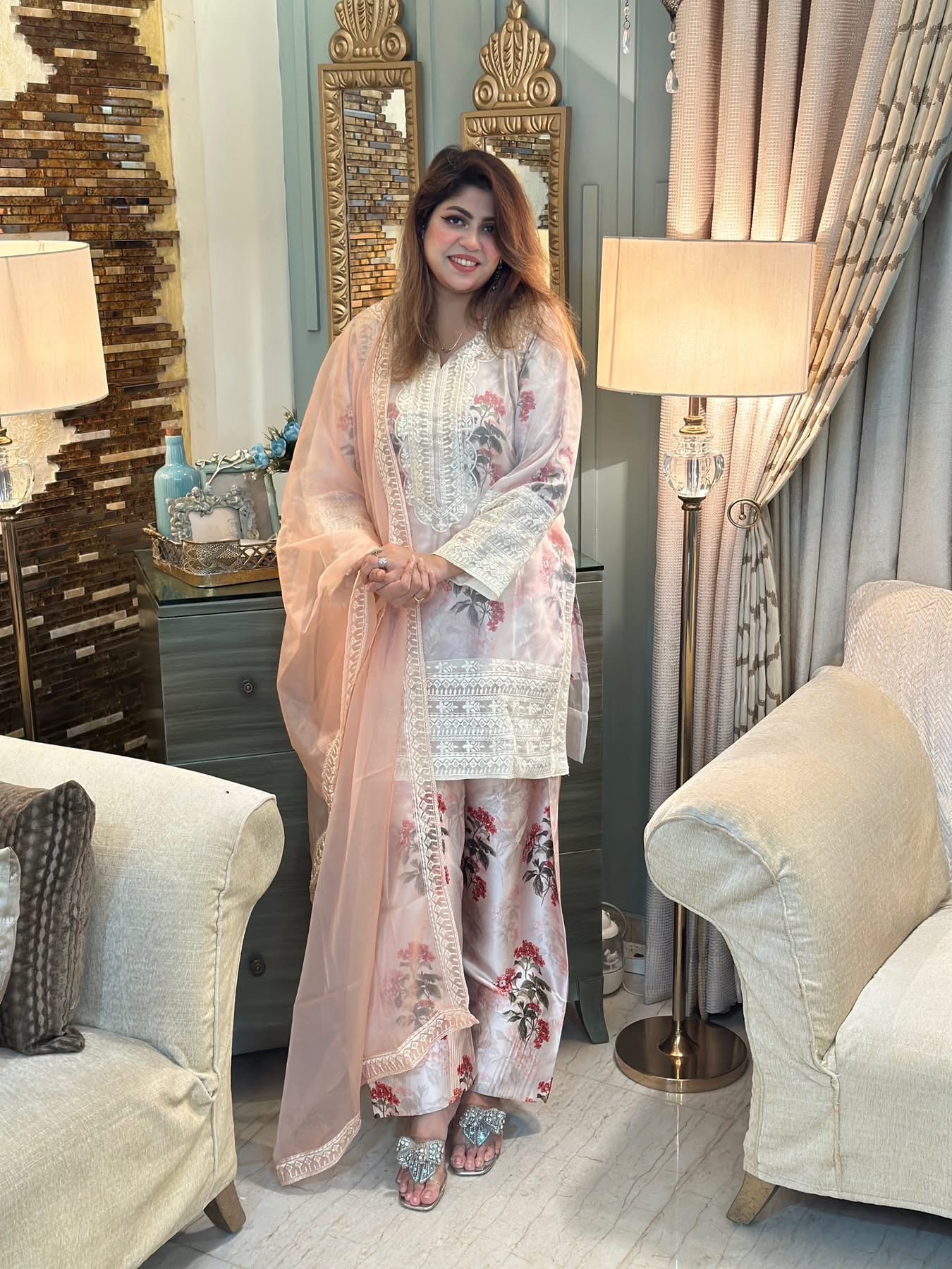 Meticulously designed patches for neck , shoulder, Damaan and sleeves. Inner and trouser on the softest pure shamoz silk ( all fabrics are made ensuring top notch quality)