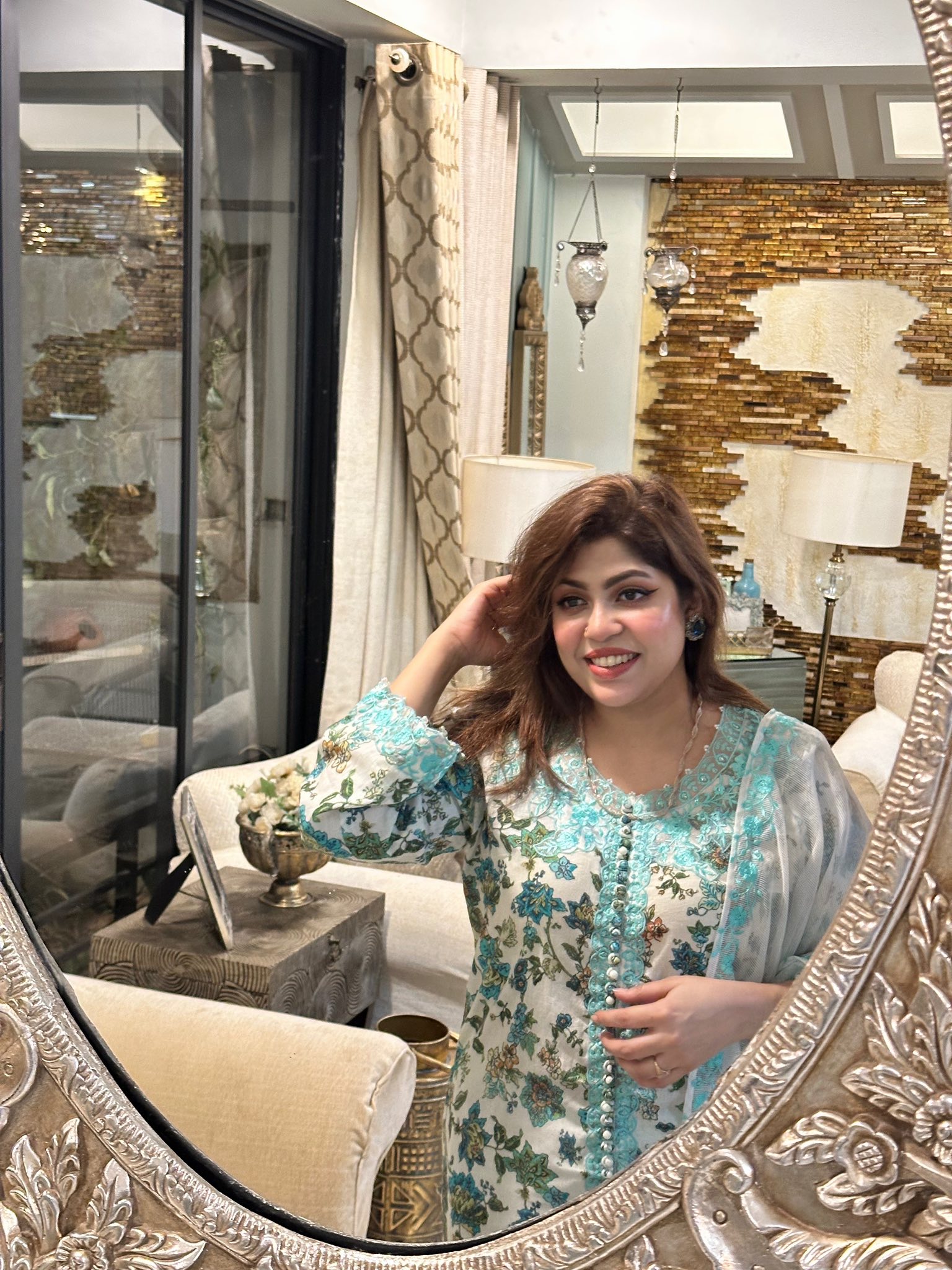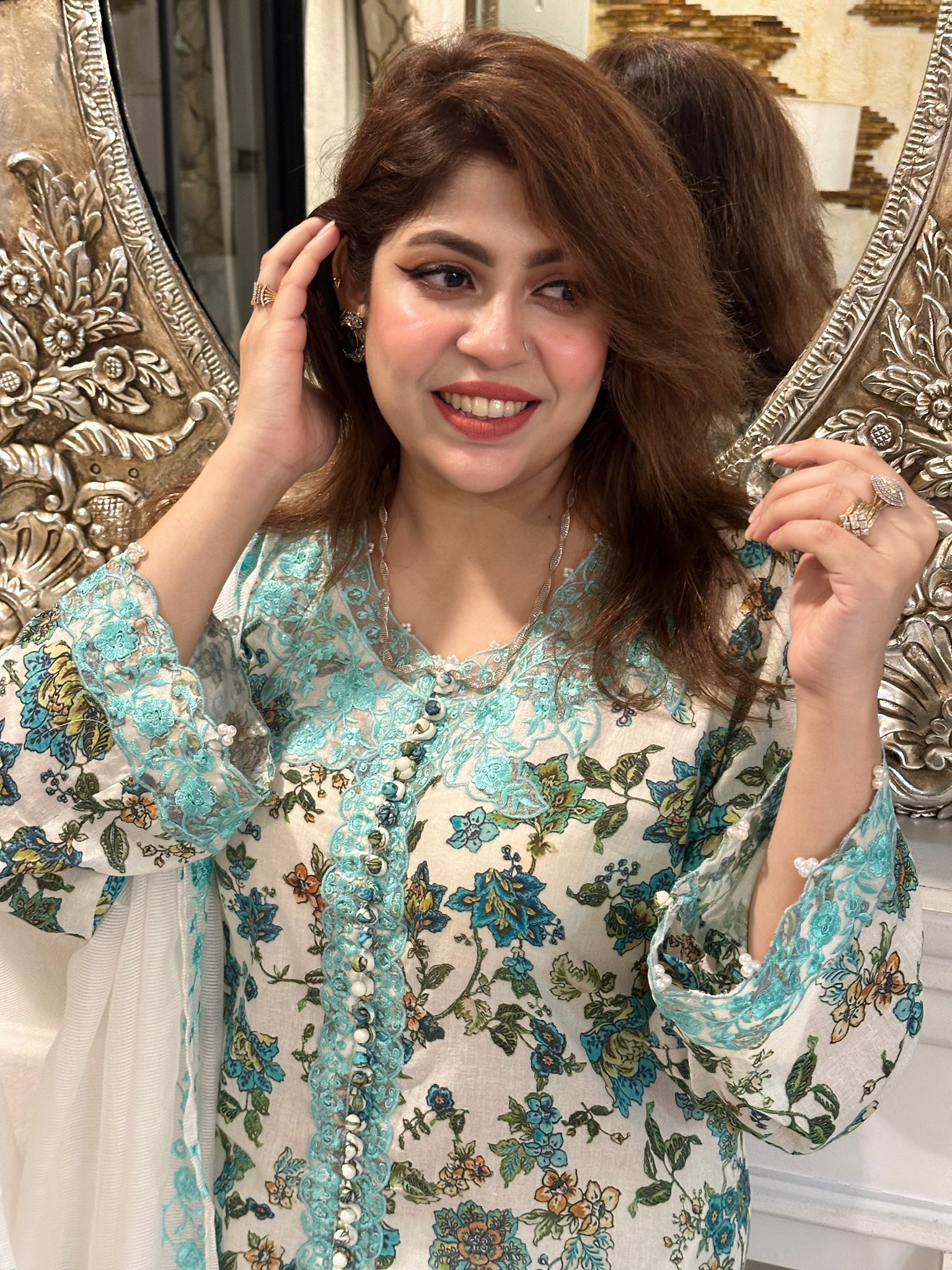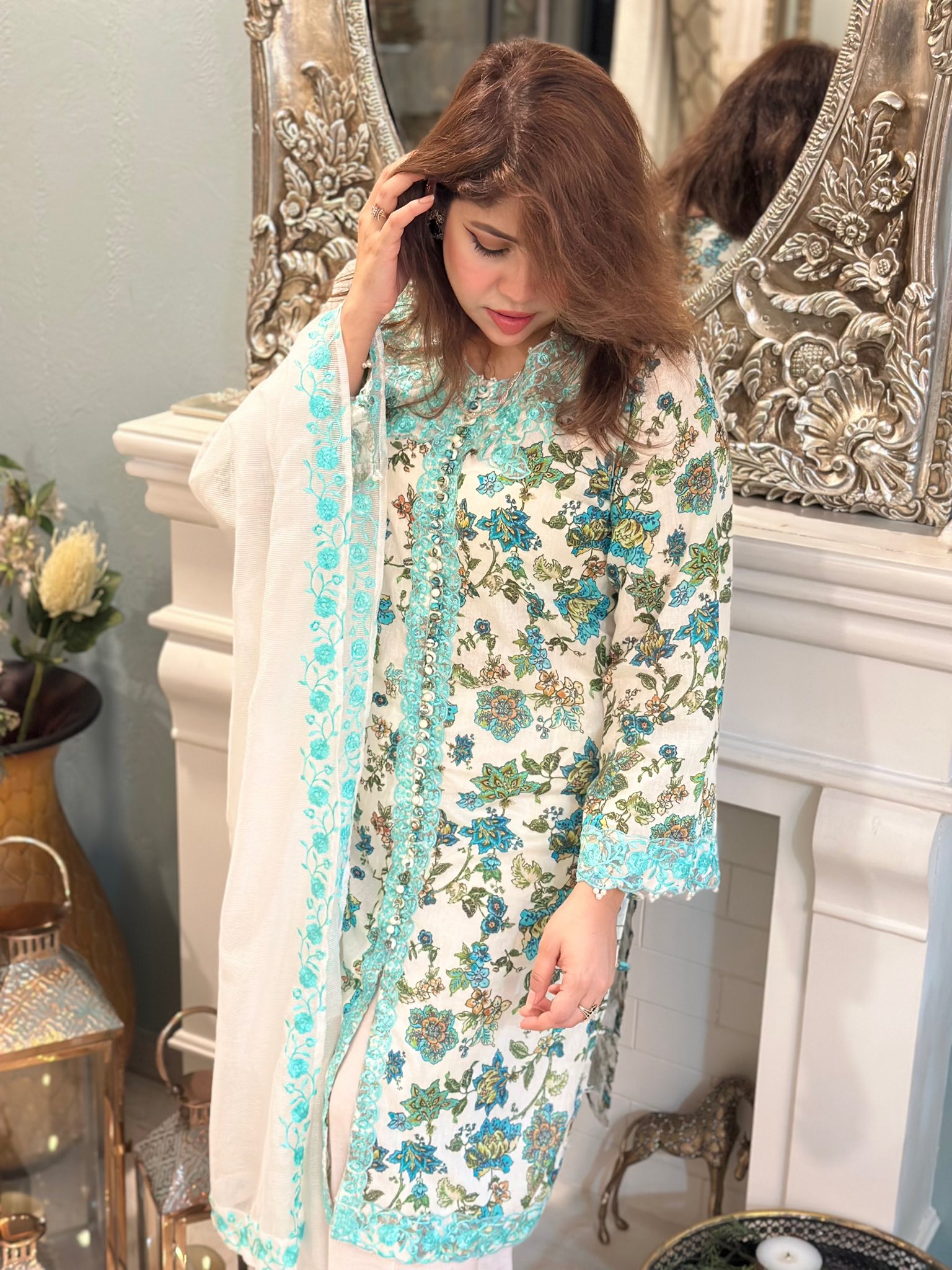 Digital Printed fines rare cotton with Exclusive Chest, body straight-line, damaan and Sleeves Embroidery
