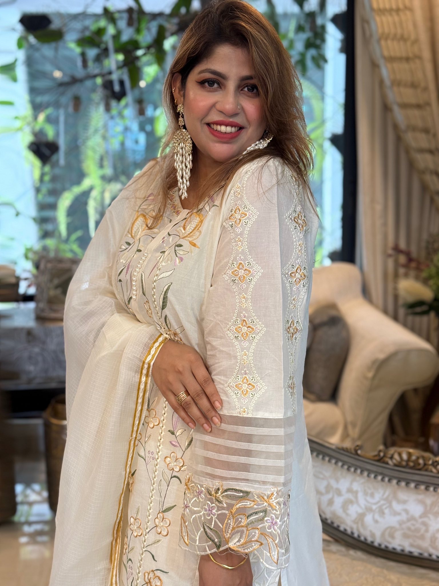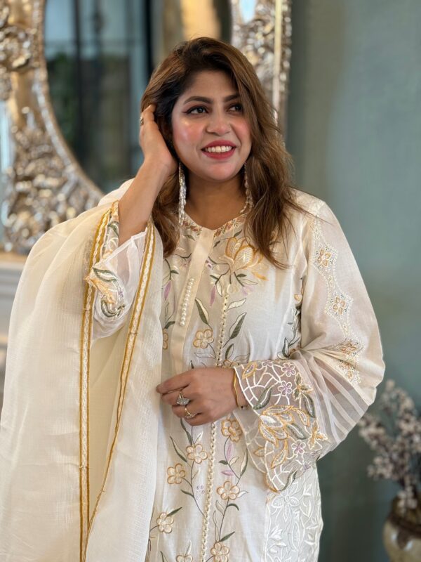 This milk white Cotton dress is fully covered in intricate embroidery and beautiful chikankari work.