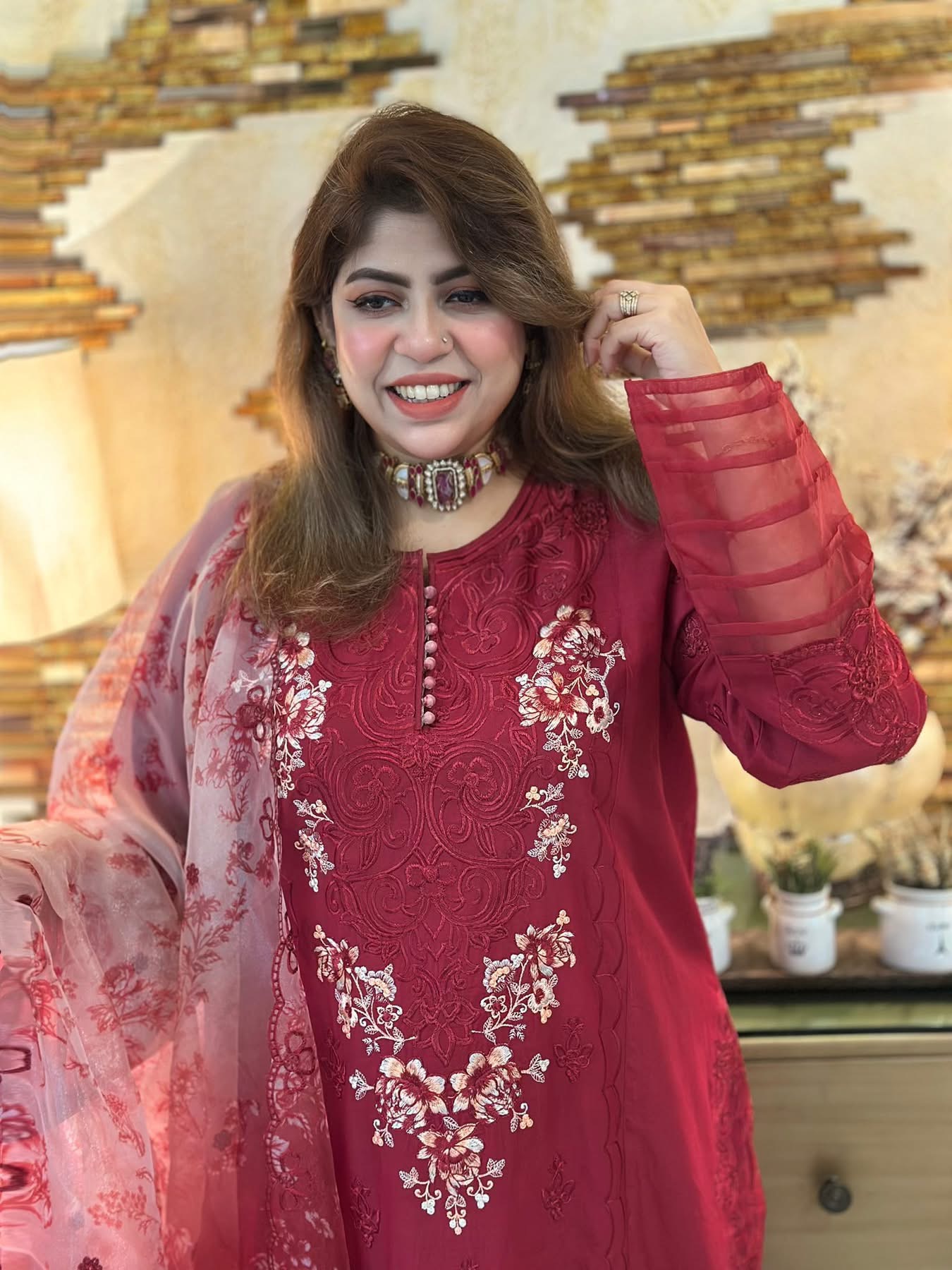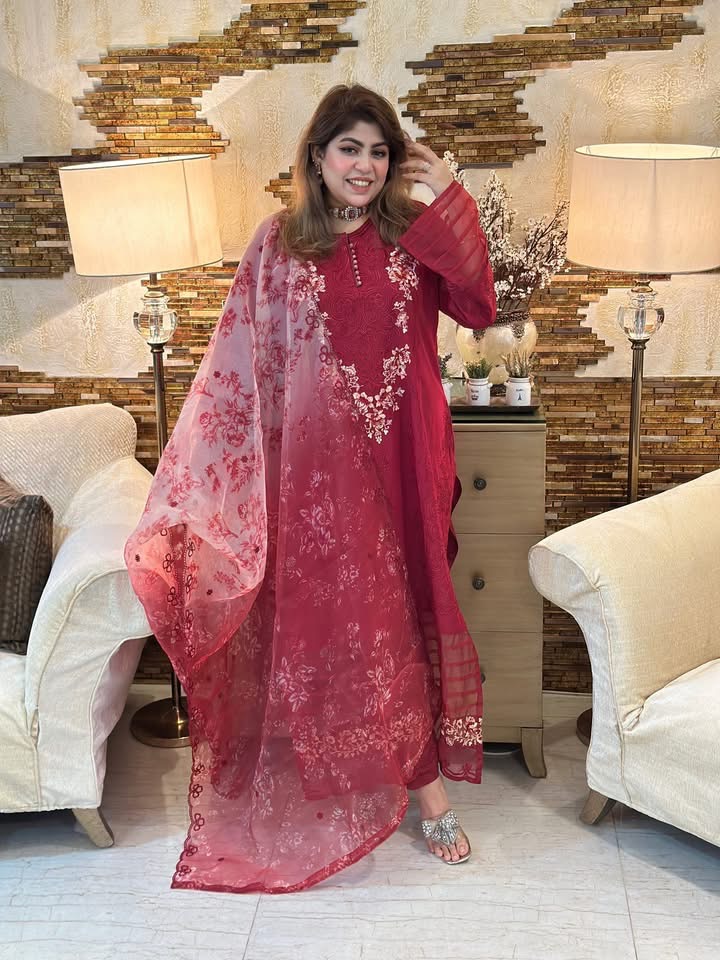Meticulously Designed On The Softest Cotton With All over Dainty Thread-work. Damaan 2 Embroidery patch and 1 back patch are also Attached.